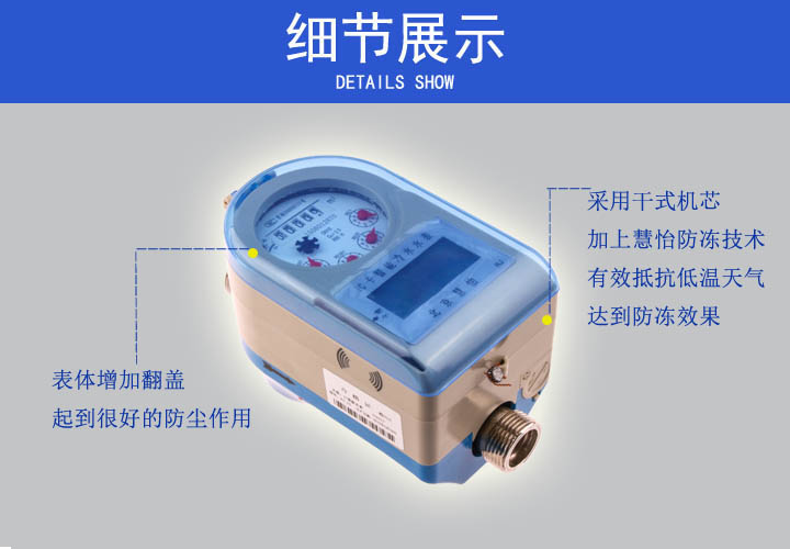 旋翼式IC卡智能水表是通过IC卡进行结算的一种水表,用户持IC卡去充值大厅购水,然后用将IC卡放入插卡区或者刷卡区充值,等待10多秒,待卡内金额充值完毕即可享受水资源。在抄表与收费方面,旋翼式IC卡智能水表不用人工代劳,没有现场操作,直接可以通过智能管理系统对进行抄表工作,然后通过系统进行智能管控,减少人情水、关系水的问题的出现,给用户以及自来水供应商提供更智能的便利。