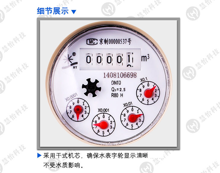 - 慧怡智能插卡水表有多流束、单流束、干式和湿式几种型号,不同环境使用不同规格型号水表(图中展示的是体阀干式单流智能插卡水表),我们根据客户需求为智能插卡水表进行升级...